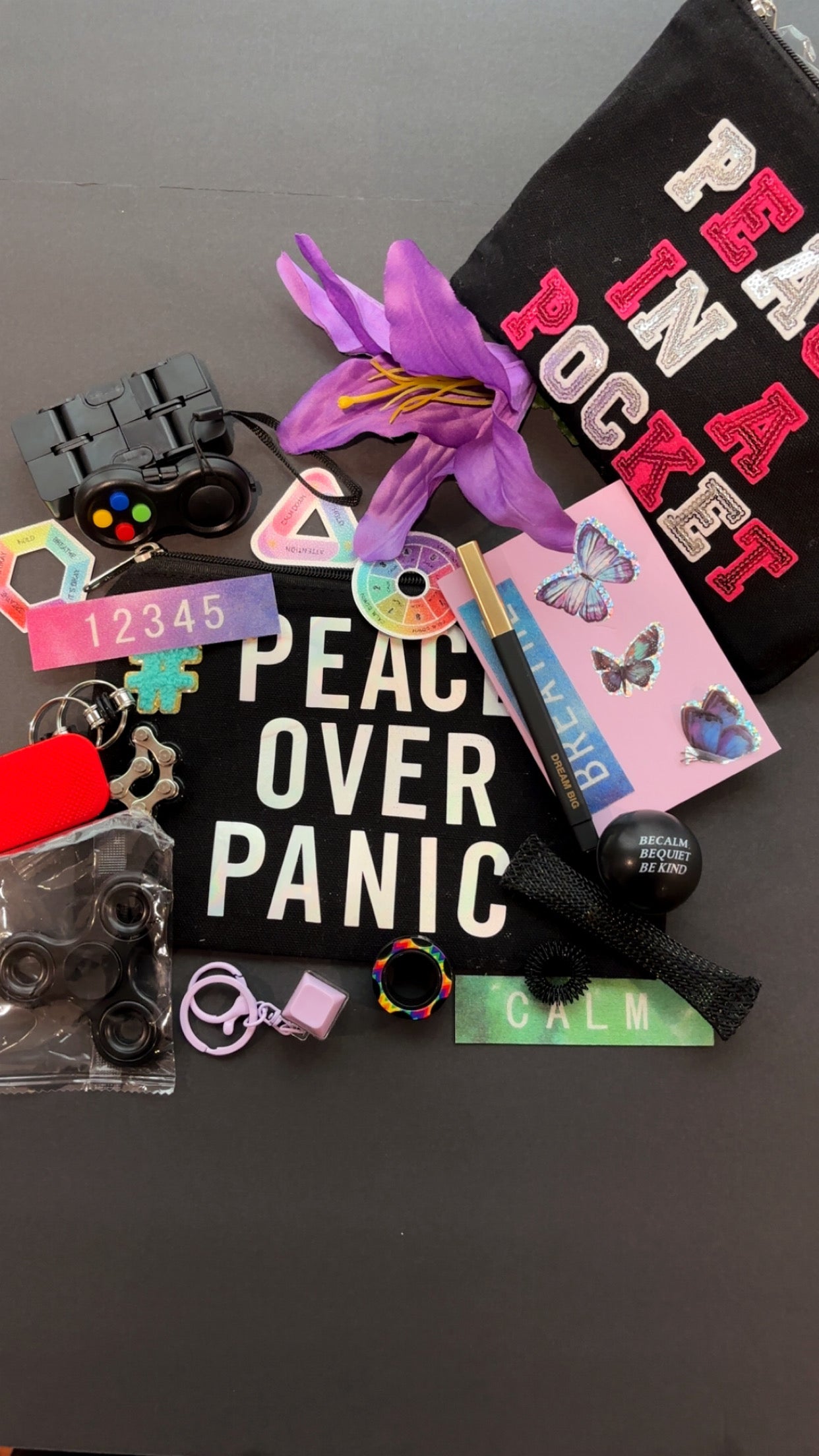 Peace in a Pocket™ is a confidence-building calm kit that gives students real tools to take control of anxiety — privately, quickly, and on their own terms.